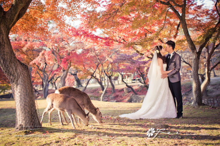 我們是在網上搜尋pre wedding的資料時,看到fei wedding的相片而開始留意。經過婚展的了解及時間上的配合,最後我們選擇了日本奈良。