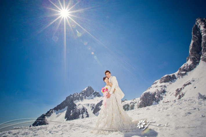 要有得揀梗係要到婚紗展啦,去到會場,有好多間都有麗江緍紗拍攝服務,最係經過Fei,比佢一幅好彭湃的巨型雪山海報吸引左。就係佢啦,我地決定就係Fei為我地pre-wedding操刀。