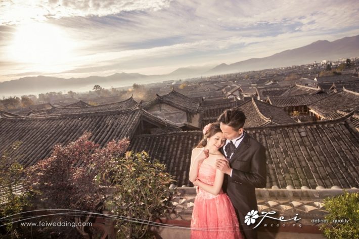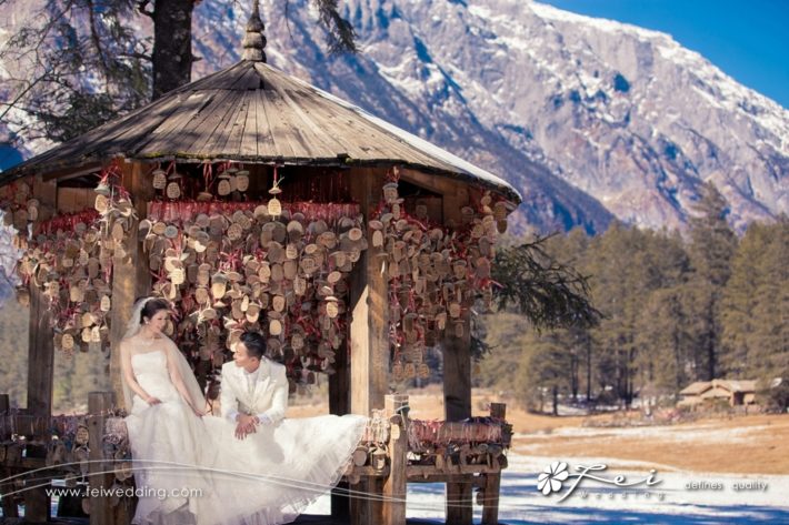 係麗江, 我行2級樓梯巳經氣喘心跳加速, 但拍攝團隊十分專業, 又走又跳又拋雪又飛頭紗, 見到都覺得佢地辛苦。
